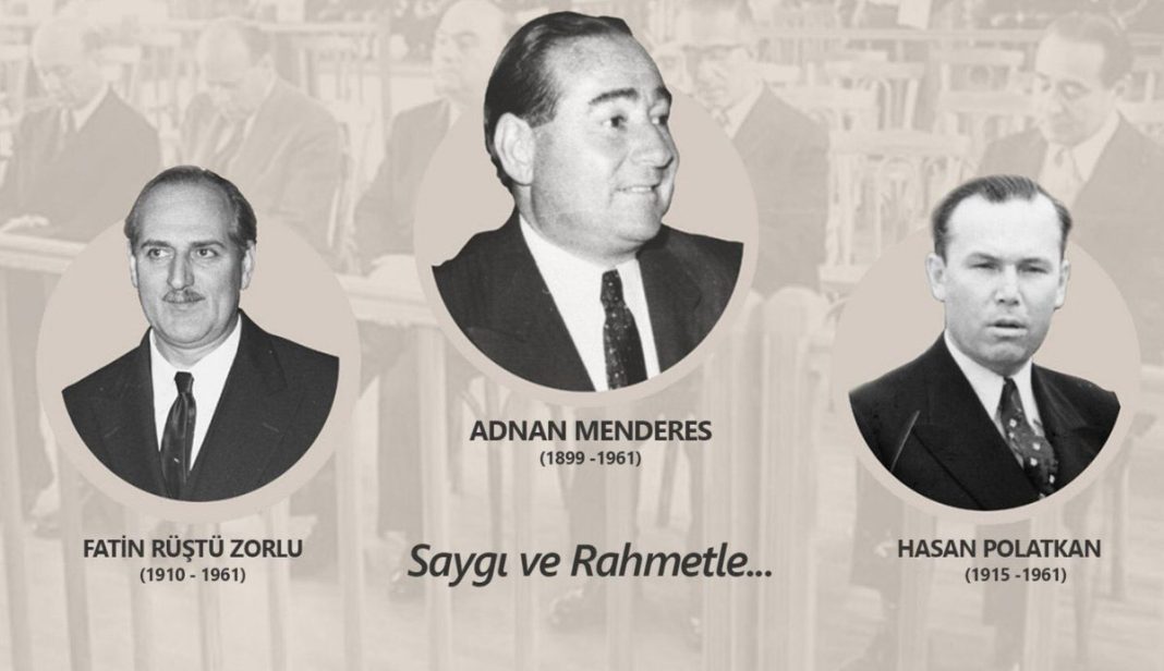 Bugün Türkiye demokrasisi için unutulmayacak bir kara leke olarak tarih sayfalarına kazınan, Başbakan Adnan Menderes ile Maliye Bakanı Hasan Polatkan ve Dışişleri Bakanı Fatin Rüştü Zorlu’nun idam edilmelerinin yıl dönümü.